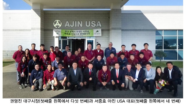 권영진 대구시장이 미국에 있는 자동차 부품 생산 공장인 아진USA(대표 서중호)를 방문해 대구경북 지역에서 온 ..