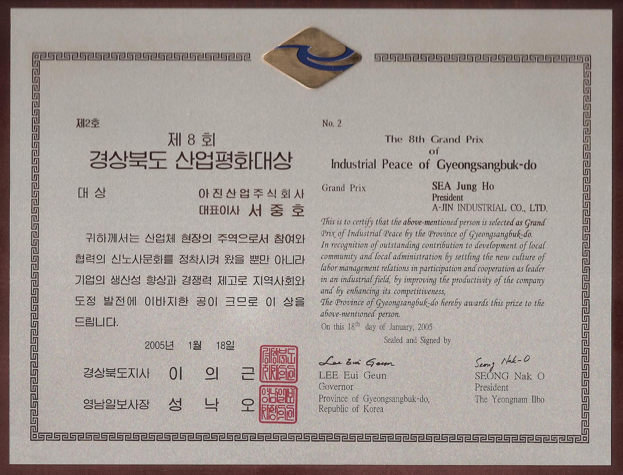 2006 경상북도중소기업대상 아진산업㈜ 선정