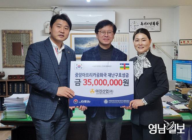아진산업(대표이사 서중호)은 3일 중앙아프리카공화국 어린이와 베트남 어린이 돕기 후원금 3천500만원을 한국다문화재단중앙회..