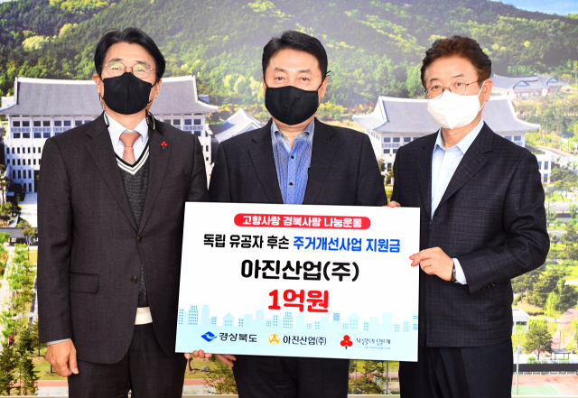 경북 경산 소재 중견기업 아진산업(대표 서중호)이 독립유공자 후손 주거개선 사업 후원금 1억원을 기부했다.경상북도는 13일..