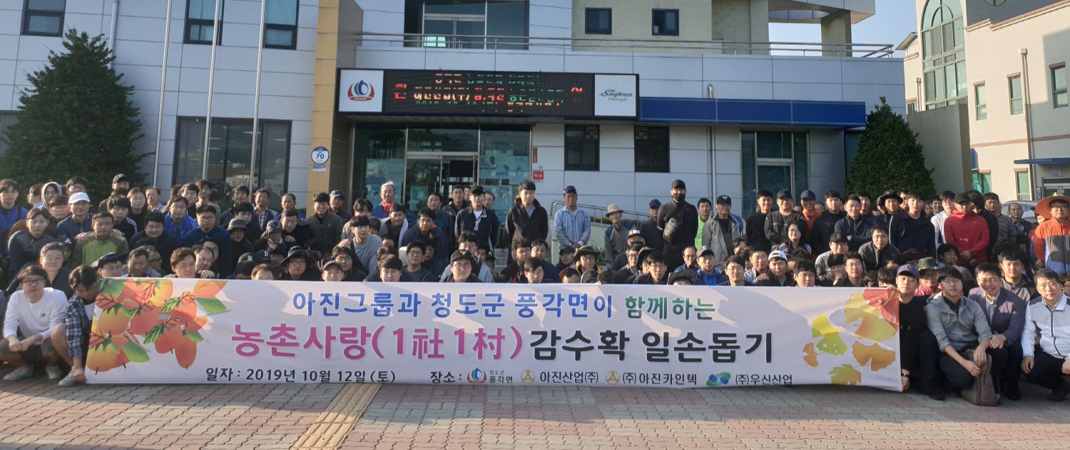 청도군 풍각면과 1사 1촌 자매결연 기업인 경산의 아진산업(대표이사 서중호) 임·직원 300여 명은 12일 본격적인 감 수..