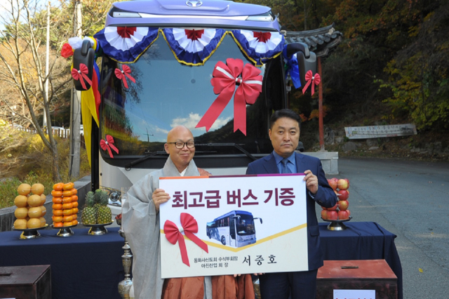 아진산업 서중호 대표, 동화사에 대형버스(45인승)기증