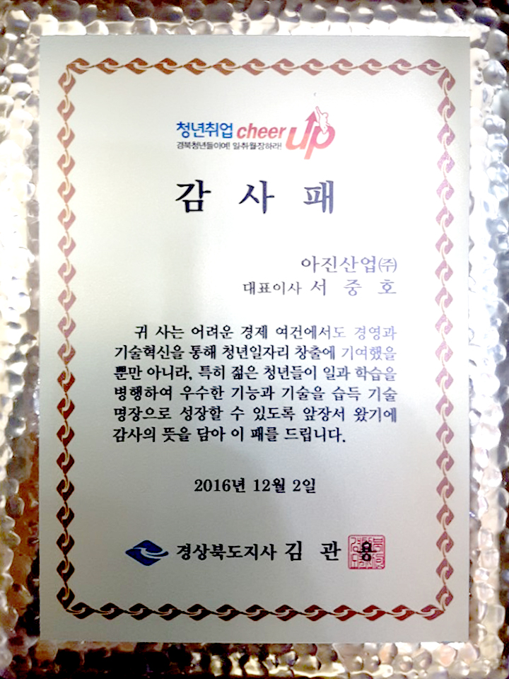 청년일자리창출 기여 감사패
