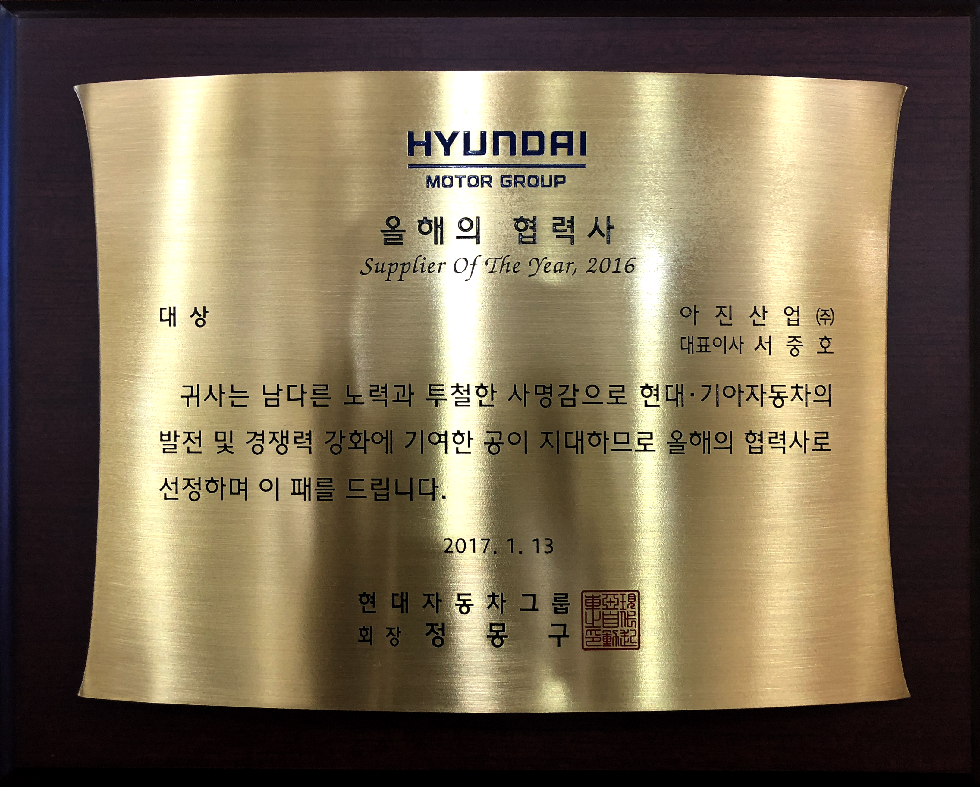 2017.01.13 현대자동차그룹 올해의 협력사 대상 수상