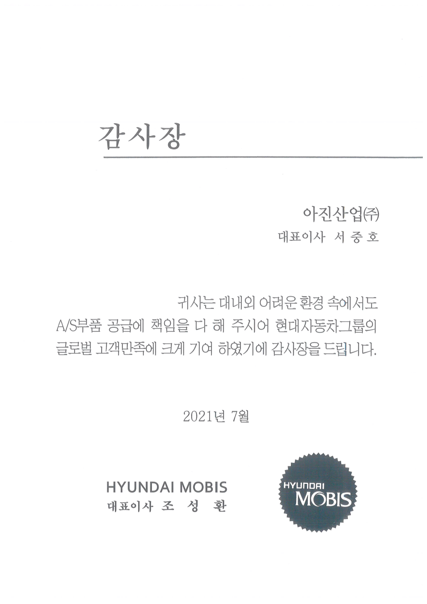 현대모비스 납입우수 감사장 페이지 정보 작성일 21-07-23 10:34 목록 본문 2021년 7월 이전글기술5스타 인증 22.01.13 다음글현대자동차 올해의협력사수상_품질부문 21.01.21 댓글 0 댓글목록 등록된 댓글이 없습니다.