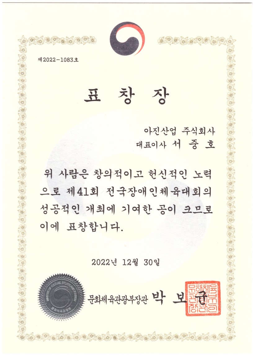제41회 전국장애인체육대회 성공개최 기여 페이지 정보 작성일 23-01-03 13:46 목록 본문 2022.12.30 이전글경산과학고등학교 과학 영재 장학금기탁 23.03.06 다음글직업교육, 현장실습 및 채용전환 기회제공 감사패 22.08.08 댓글 0 댓글목록 등록된 댓글이 없습니다.